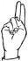 На ћирилици написано ВЛАДИСЛАВА ОБУЋИНСКИ састоји се из 19 слова [?]. Исписано ћириличном једноручном азбуком за глувонеме: